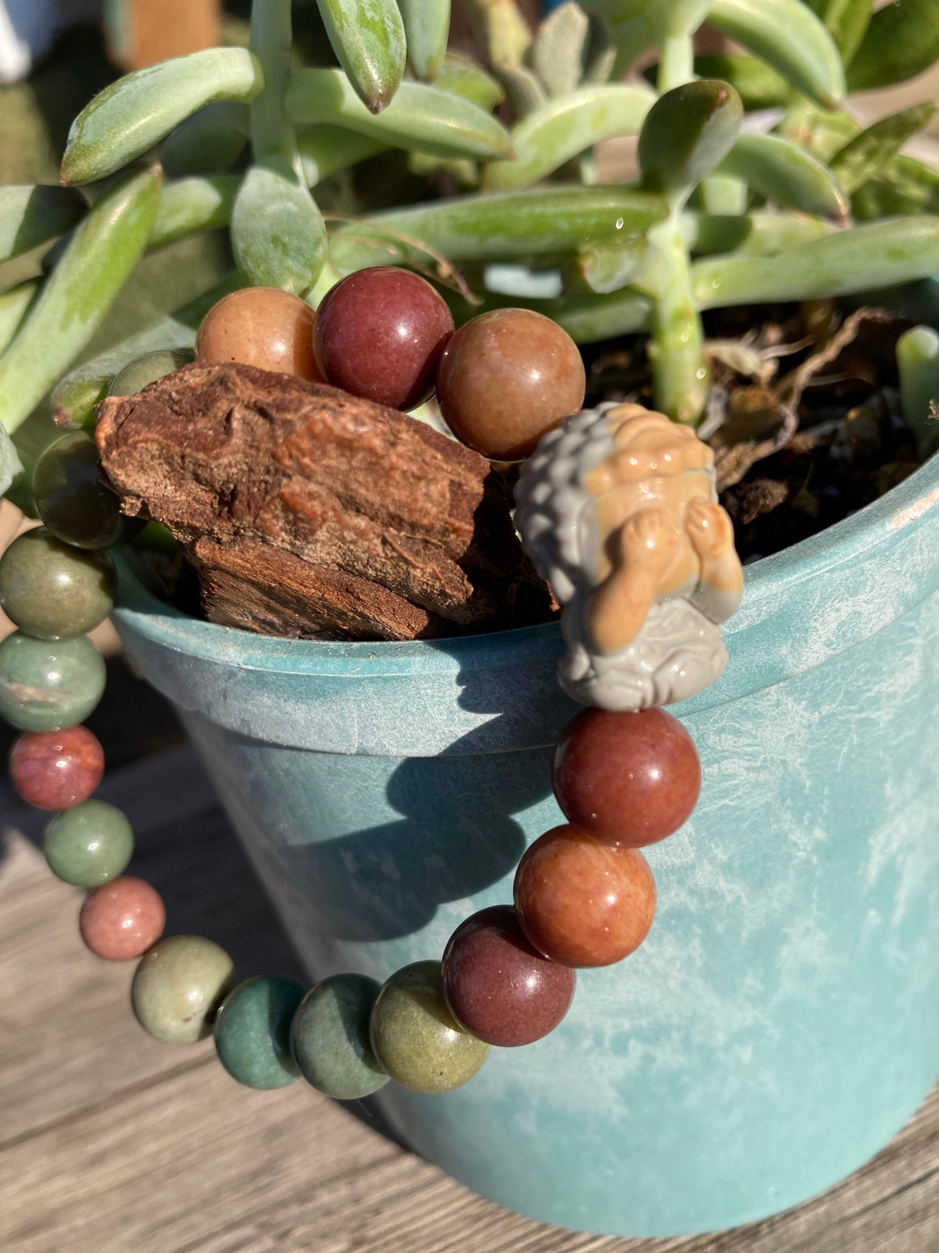 可愛い仏様堀のアラシャンブレスレット。カラーも良く仏様のワンポイントが目を引くひと品!お守りにと思い作りました。特徴としては数億年、または20億年ともいわれる長い年月をかけて風化・形成された非常に古い歴史を持つ石です。