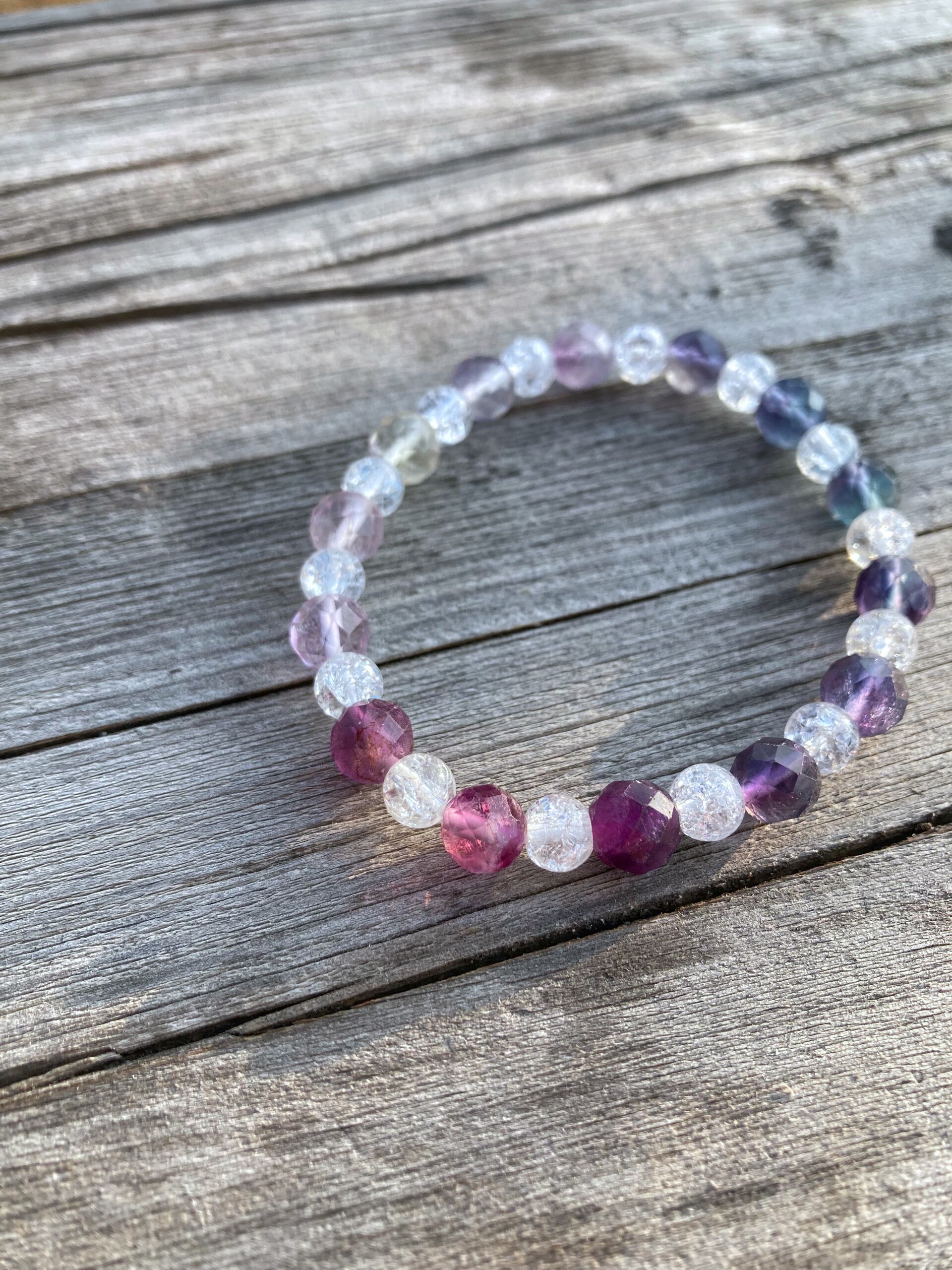□サイズ/内径15cm/フローライト7.5~7mm/クラック水晶6mm