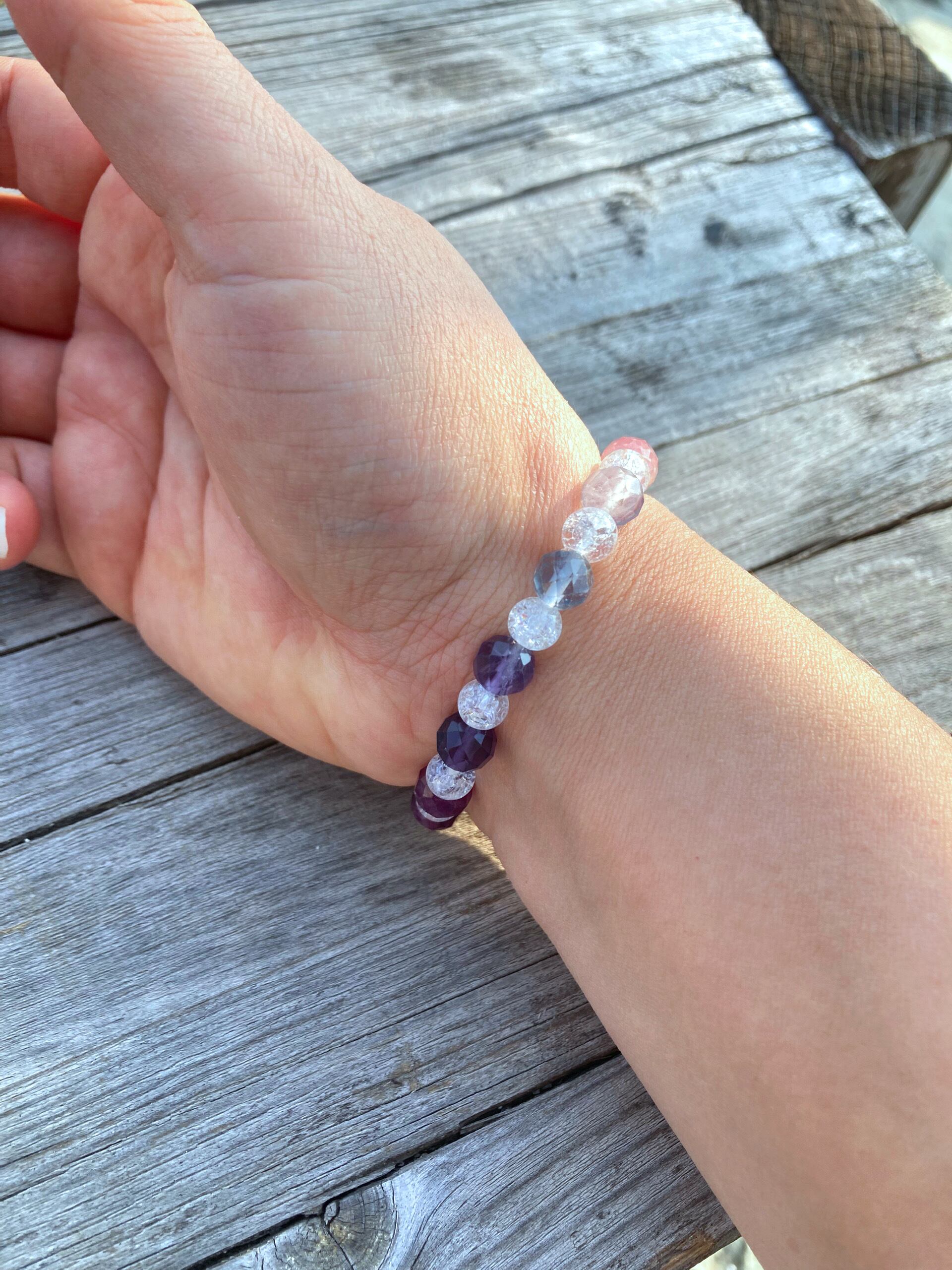 受験生応援ブレスレットです!フローライトは、「天才の石」とも呼ばれ、集中力や思考力を高めるパワーストーンとして非常に人気があります!内径は少し小さめに作りました。勿論こちらをつけたから勉強しなくても大丈夫!!では無く、付けたことによって集中力や記憶力が上がることが期待されていると言われています。玉も少し小さい子で作ったので付けていても気に障さらにいことでしょう。