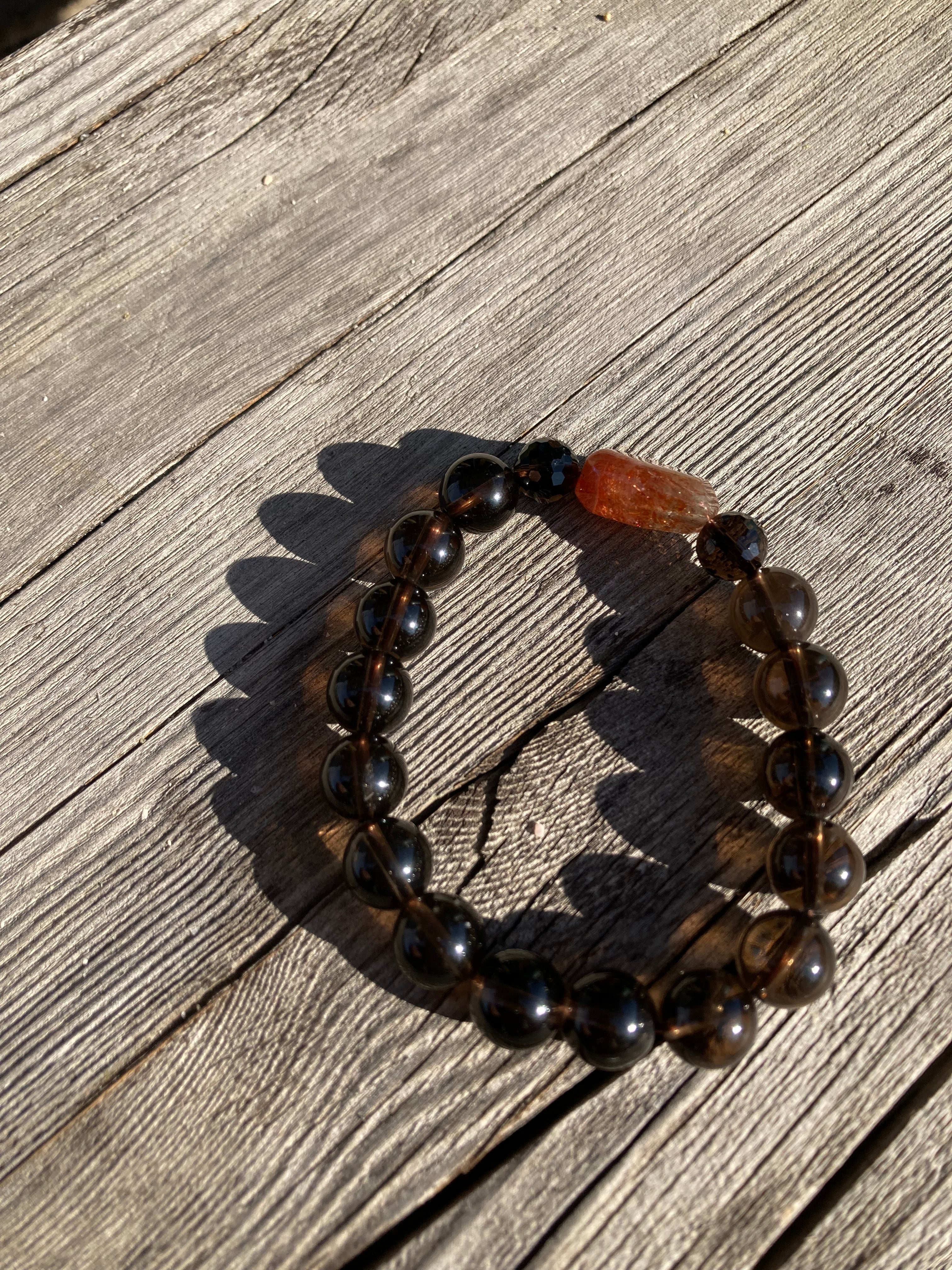 サンストーンとスモーキークォーツの組み合わせは、活力と安定・グラウンディングのバランスをもたらしてくれるでしょう。
