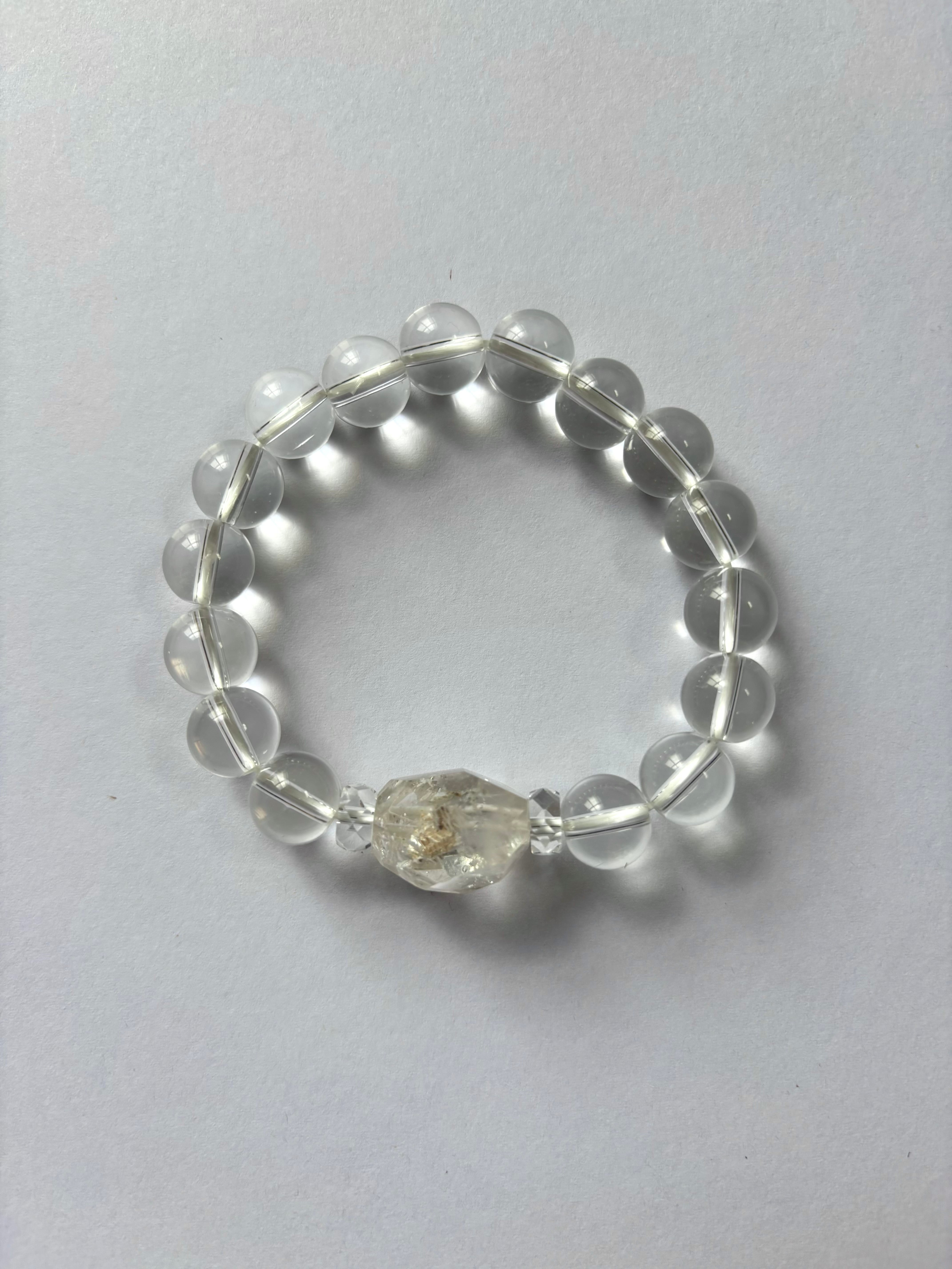 原石水晶 × クリアクォーツブレスレット|10mm・ボタンカット使用|内径15cm|一点物