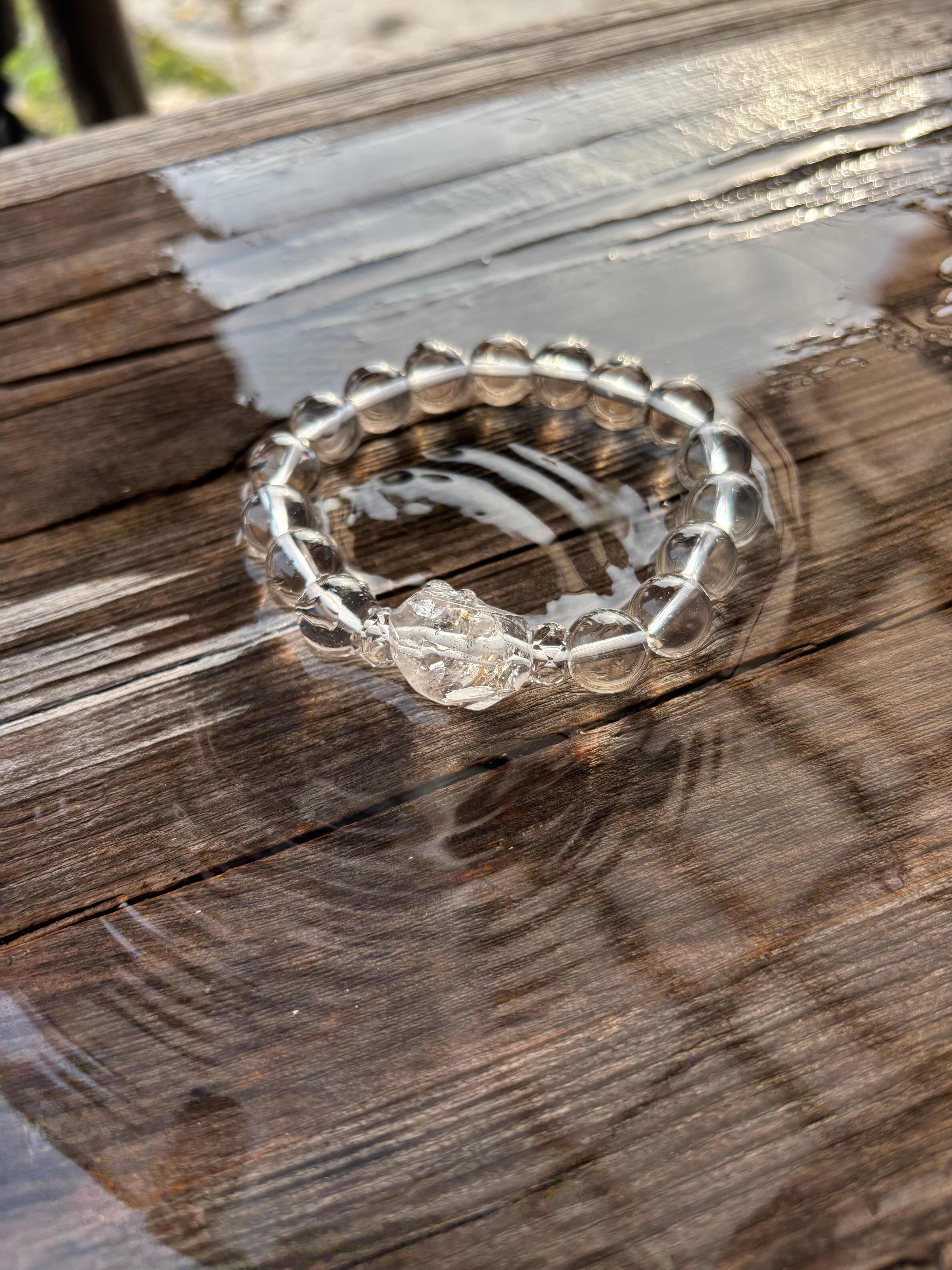 原石の形をそのまま活かした水晶を組み合わせた一点物ブレスレットです。