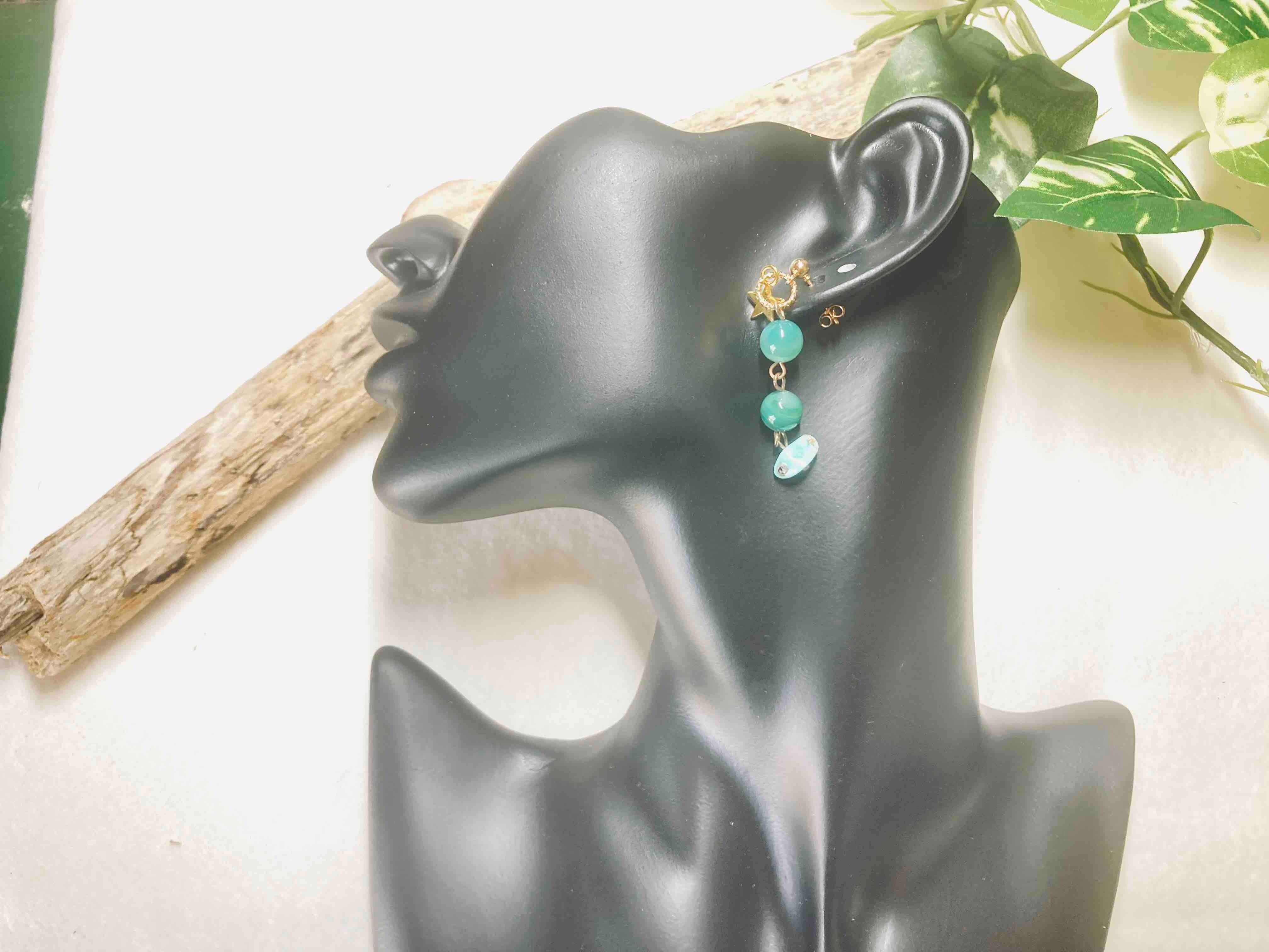 ビーチの匂いが漂う瑪瑙グリーンを使用したピアス☆